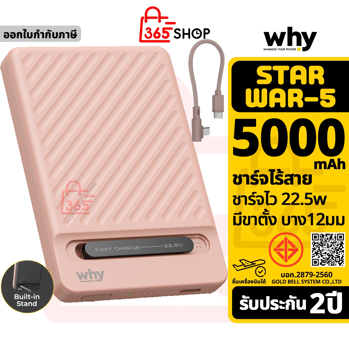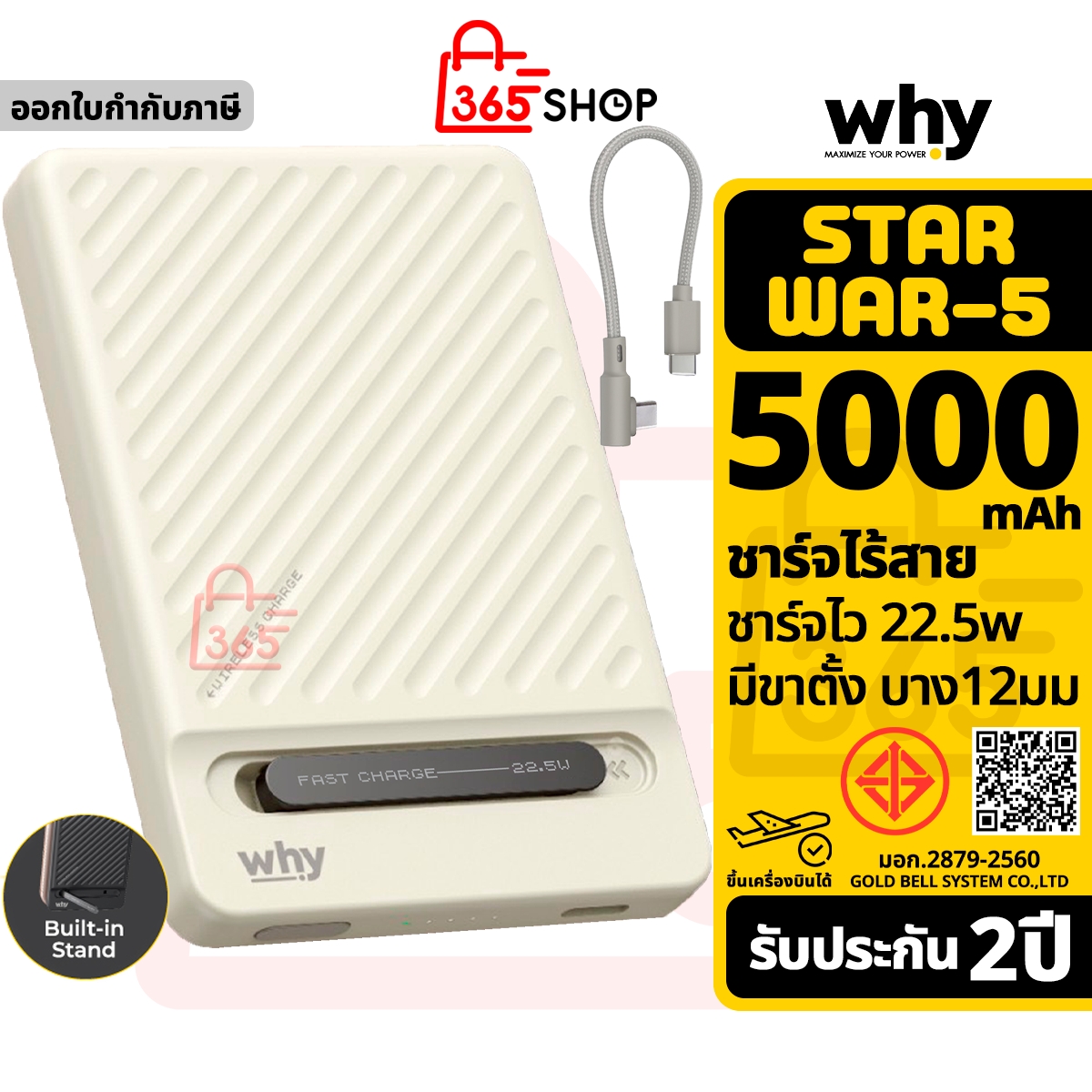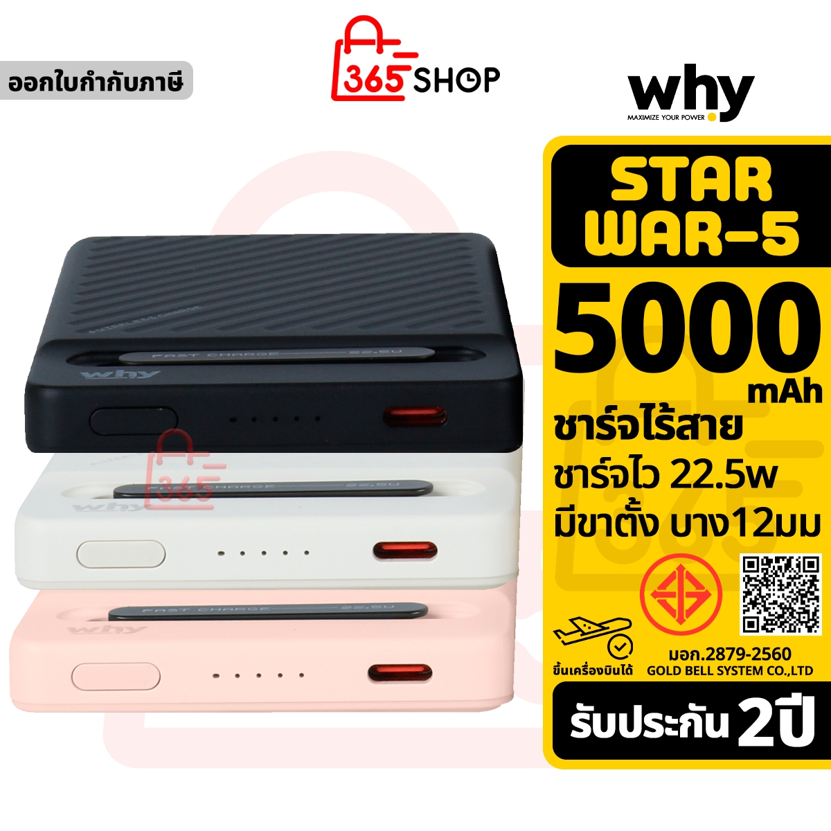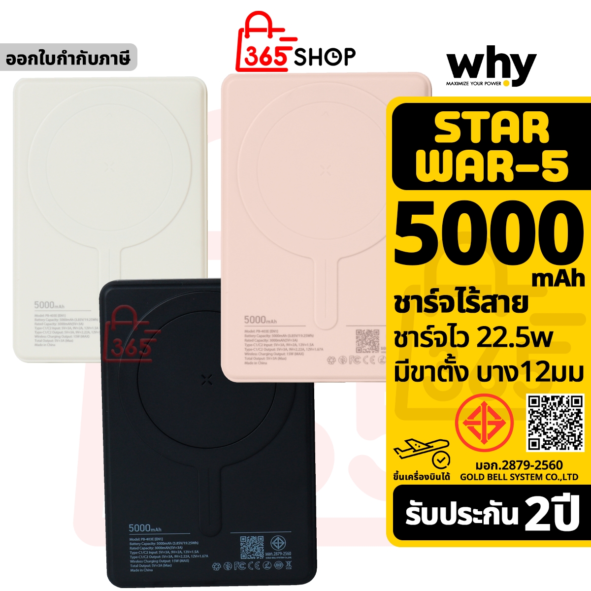 Why Starwar-5 พาวเวอร์แบงค์ 5000mAh ชาร์จไร้สาย แบตสำรอง ขึ้นเครื่องบินได้ ของแท้ รับประกัน 1ปี PB-403E