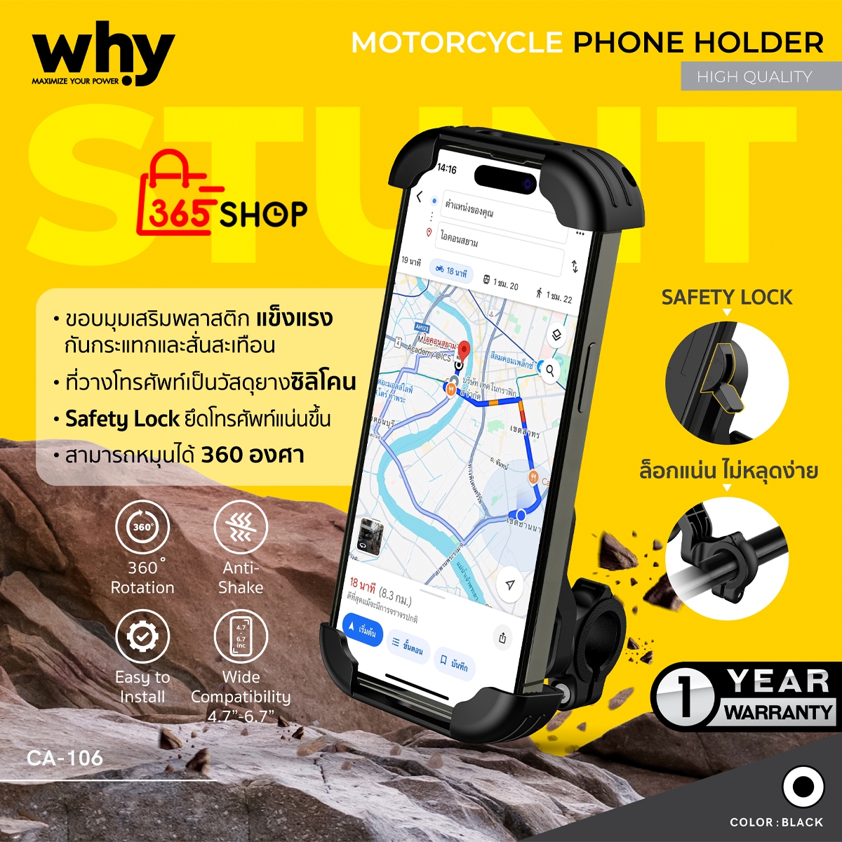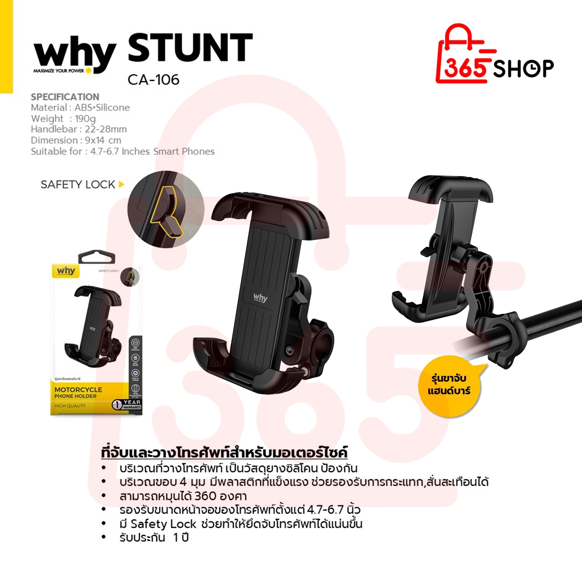 Why Stunt ที่ยึดมือถือมอเตอร์ไซค์ รถเครื่อง แฮนด์บาร์ หมุนได้ 360 ของแท้ รับประกัน 1 ปี CA-106