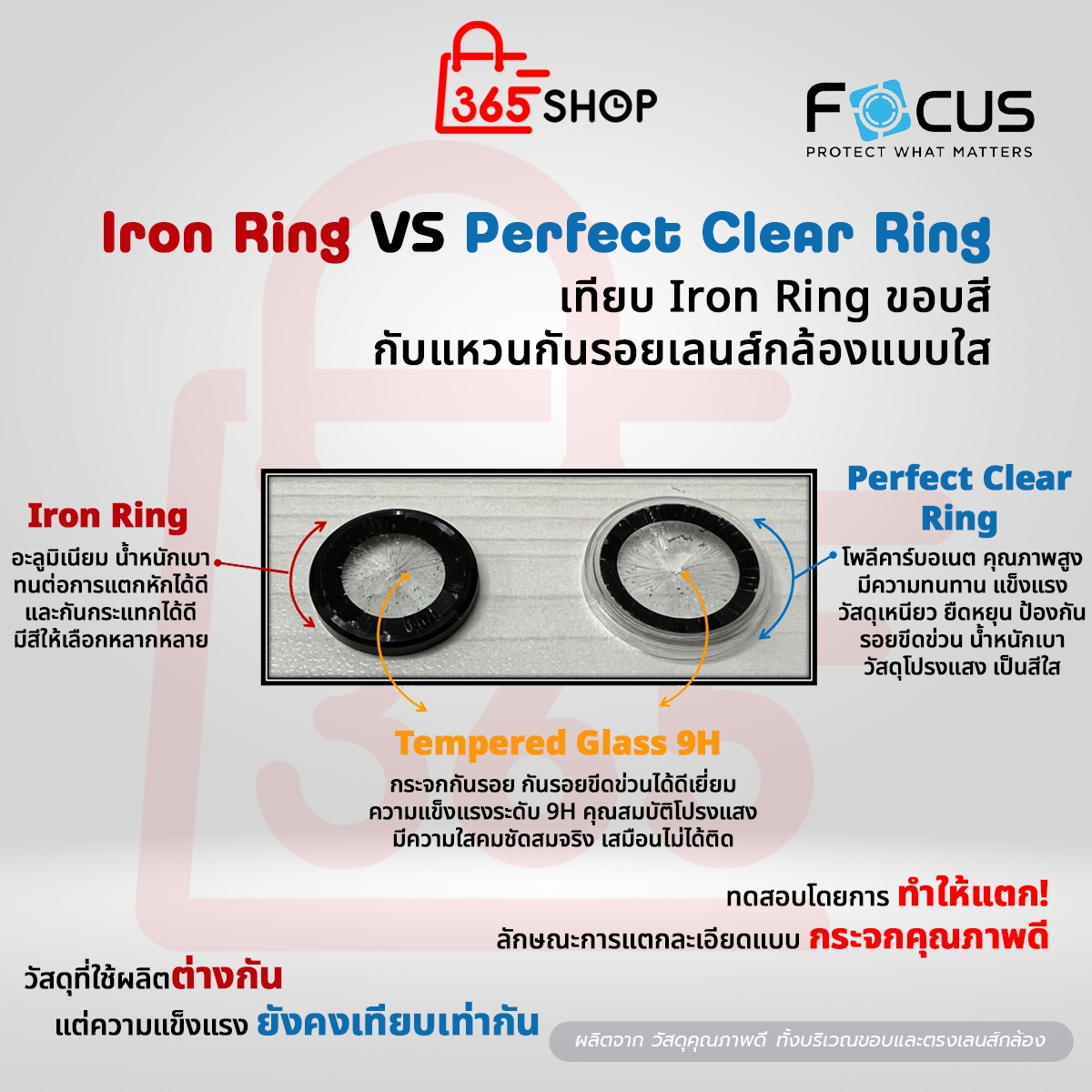 - แบบ Iron Ring ขอบ ๆ จะเป็นอะลูมิเนียมแบบสี มีสีให้เลือกที่ตรงกับเลนส์ ตรงกลางเป็นกระจกความแข็งระดับ 9H