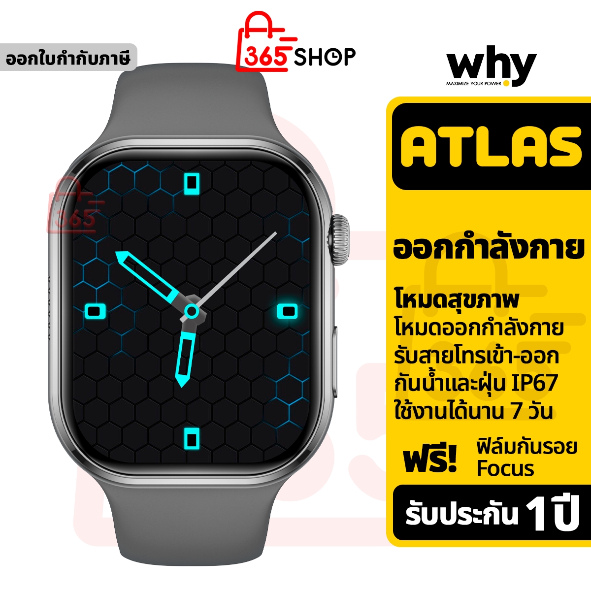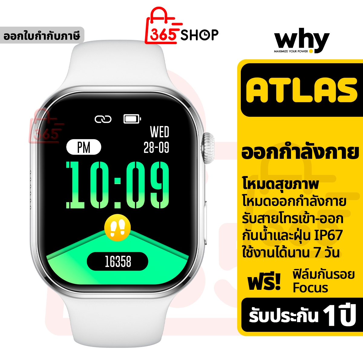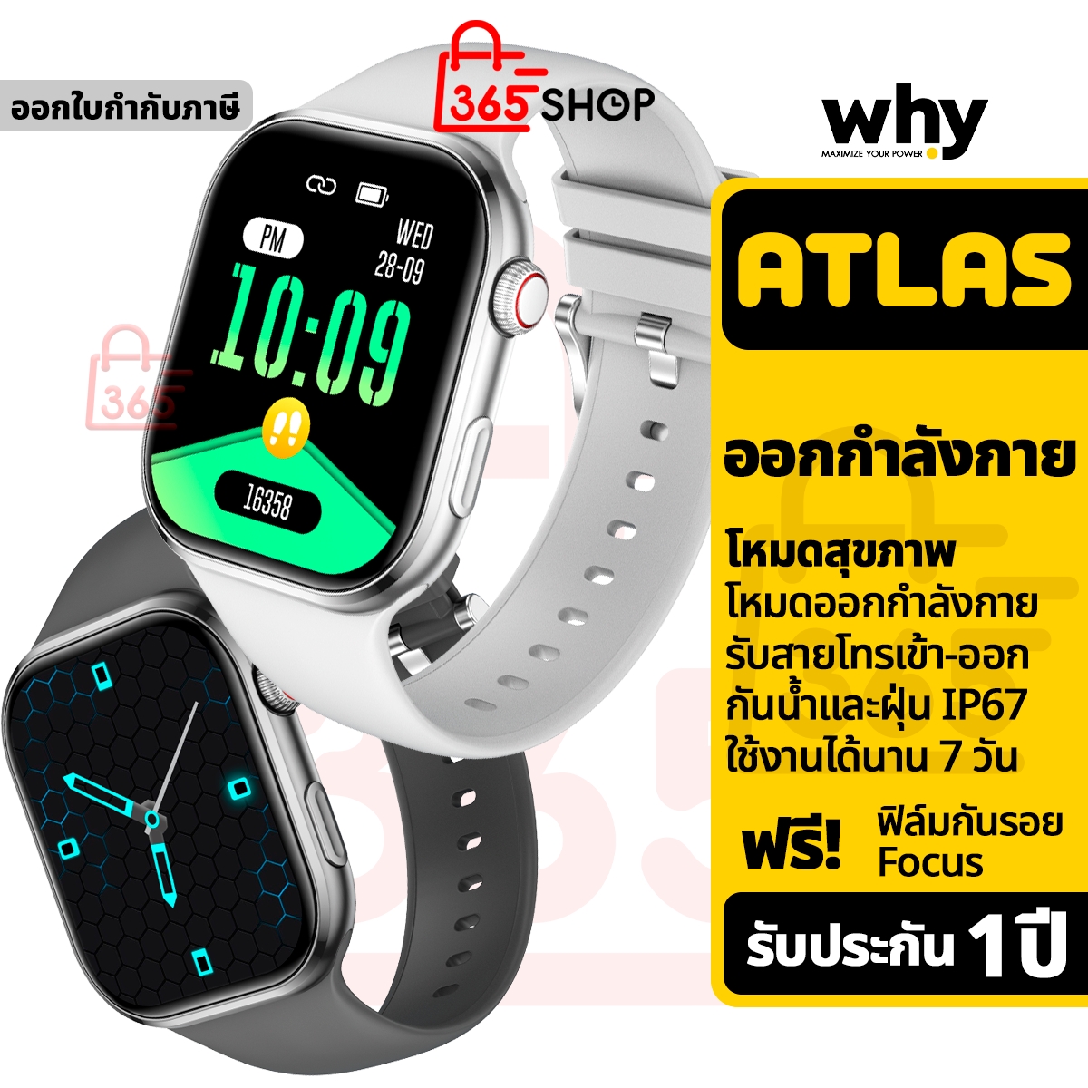 Why Atlas นาฬิกาสมาร์ทวอช ออกกำลังกาย อัจฉริยะ กันน้ำและฝุ่น ของแท้ รับประกัน 1 ปี SW-105A