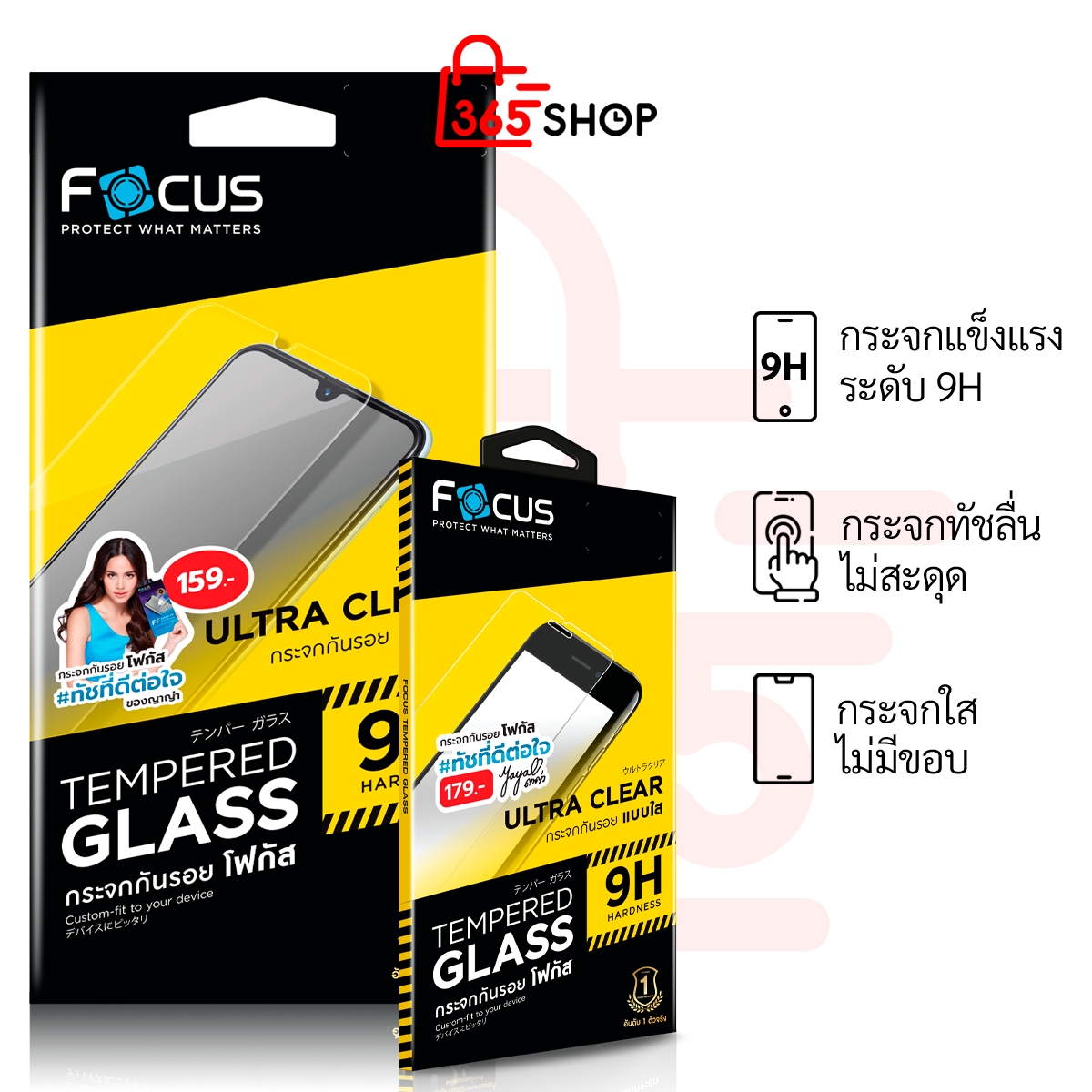 โฟกัส Focus Tempered Glass วัสดุแข็งแรงระดับ 9H ทนทานต่อรอยขีดข่วน